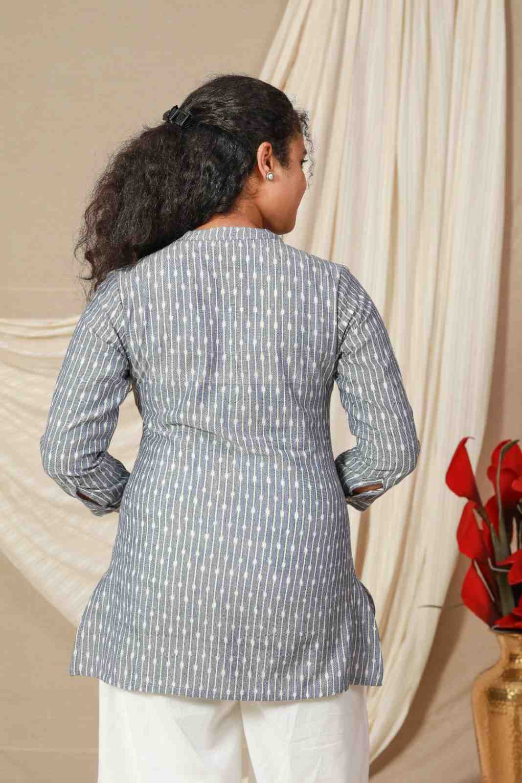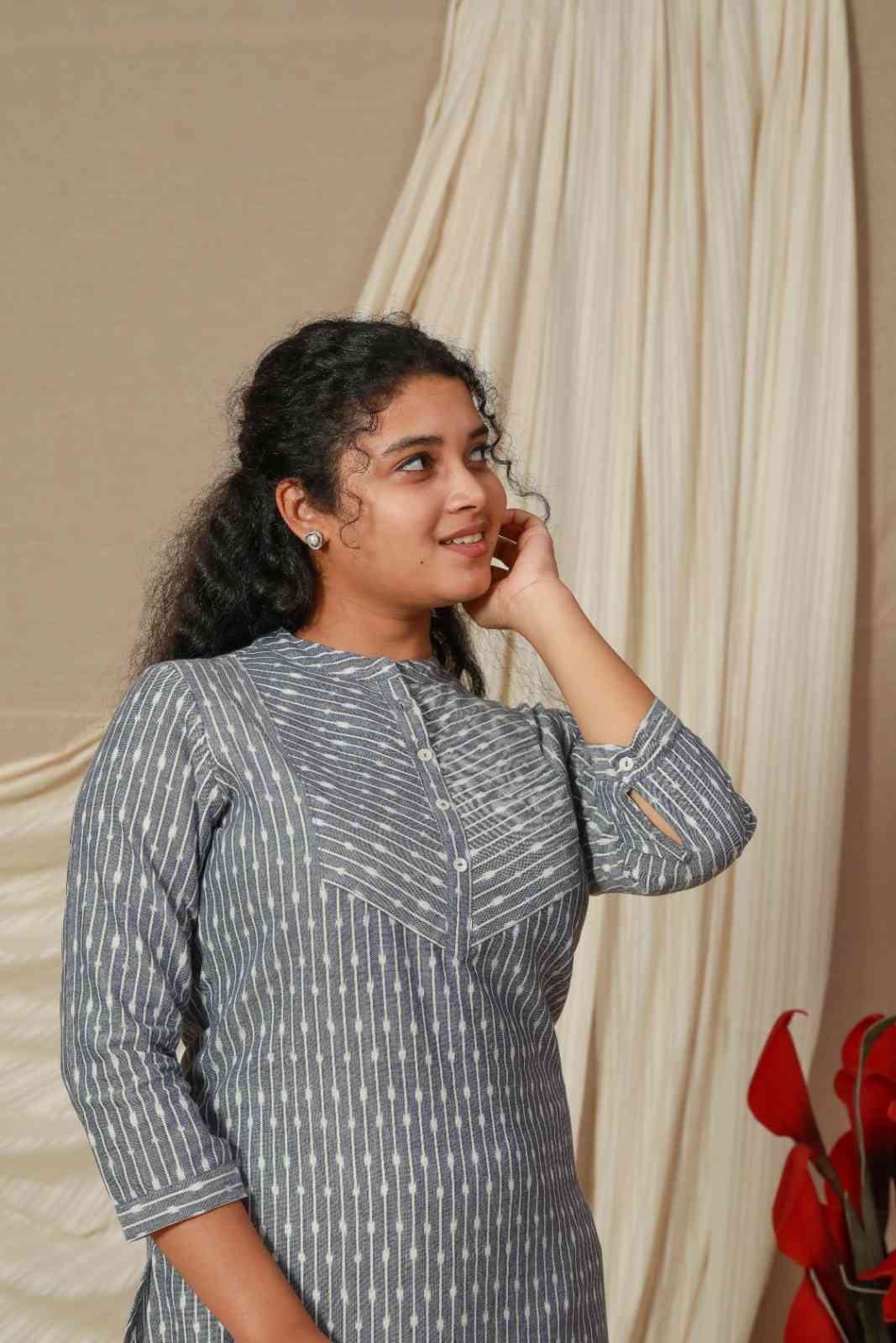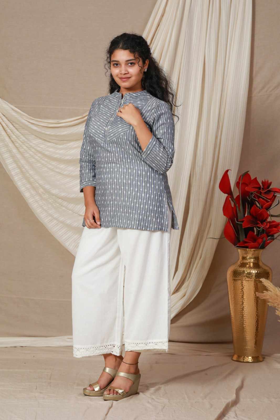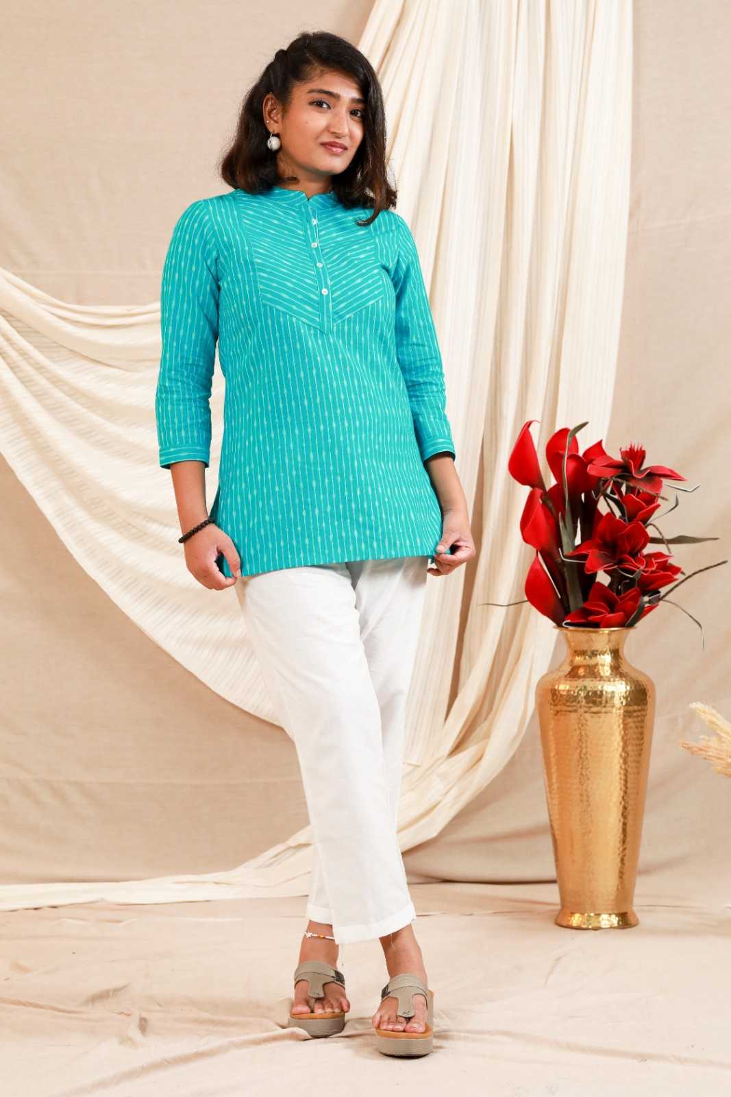Feature:Band collar straight fit top,Soft handwoven premium Ikat