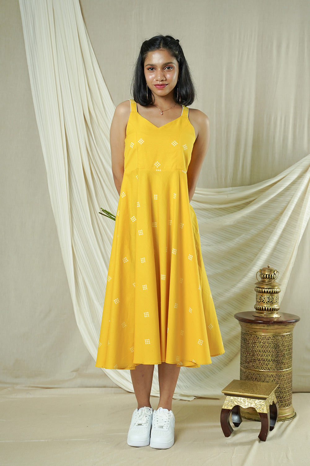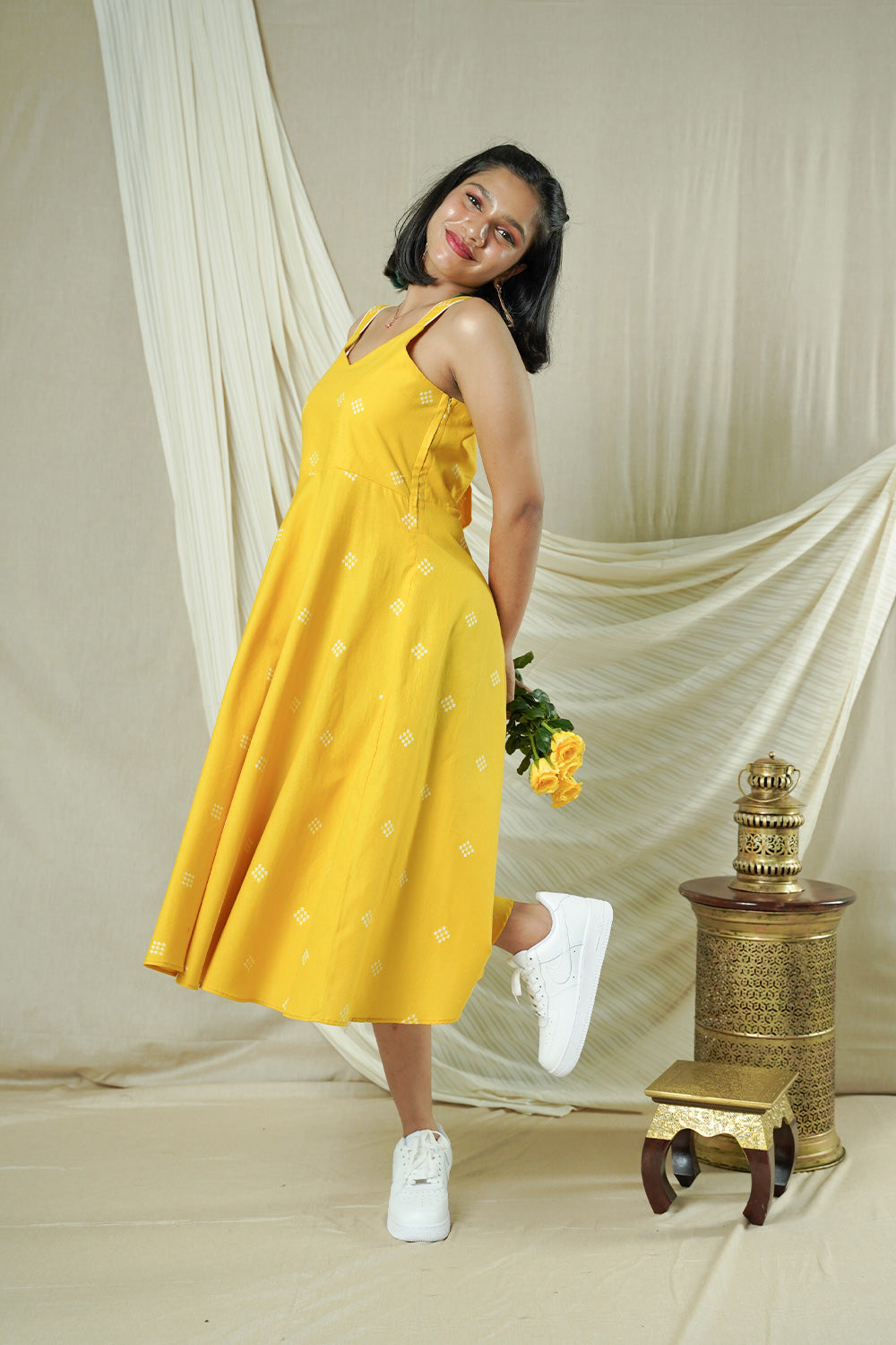 This dress brings traditional hand weaving to a contemporary design, merging comfort and cultural charm effortlessly.