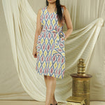 - Design: Sleeveless knee-length dress with a relaxed fit and a waist belt for adjustable styling.